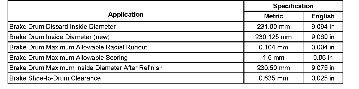 Drum Brake Component Specifications: