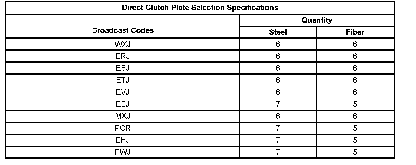 Direct Clutch Plate Selection Specifications: