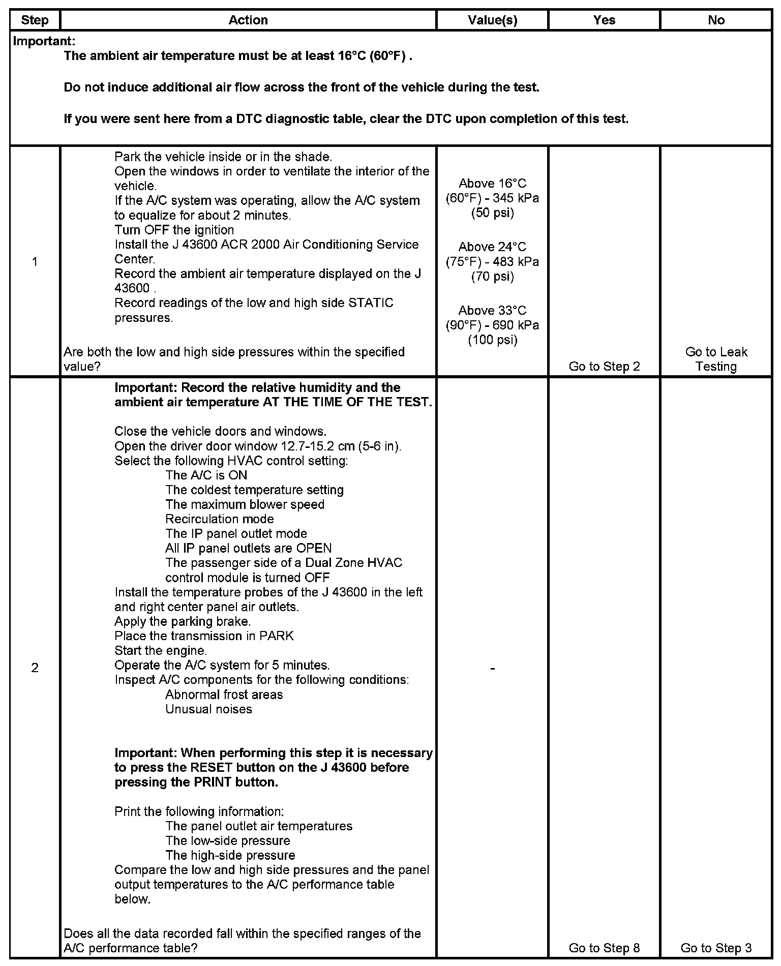 1. This step determines if the A/C system has at least the minimum refrigerant charge required to operate the system without damage.