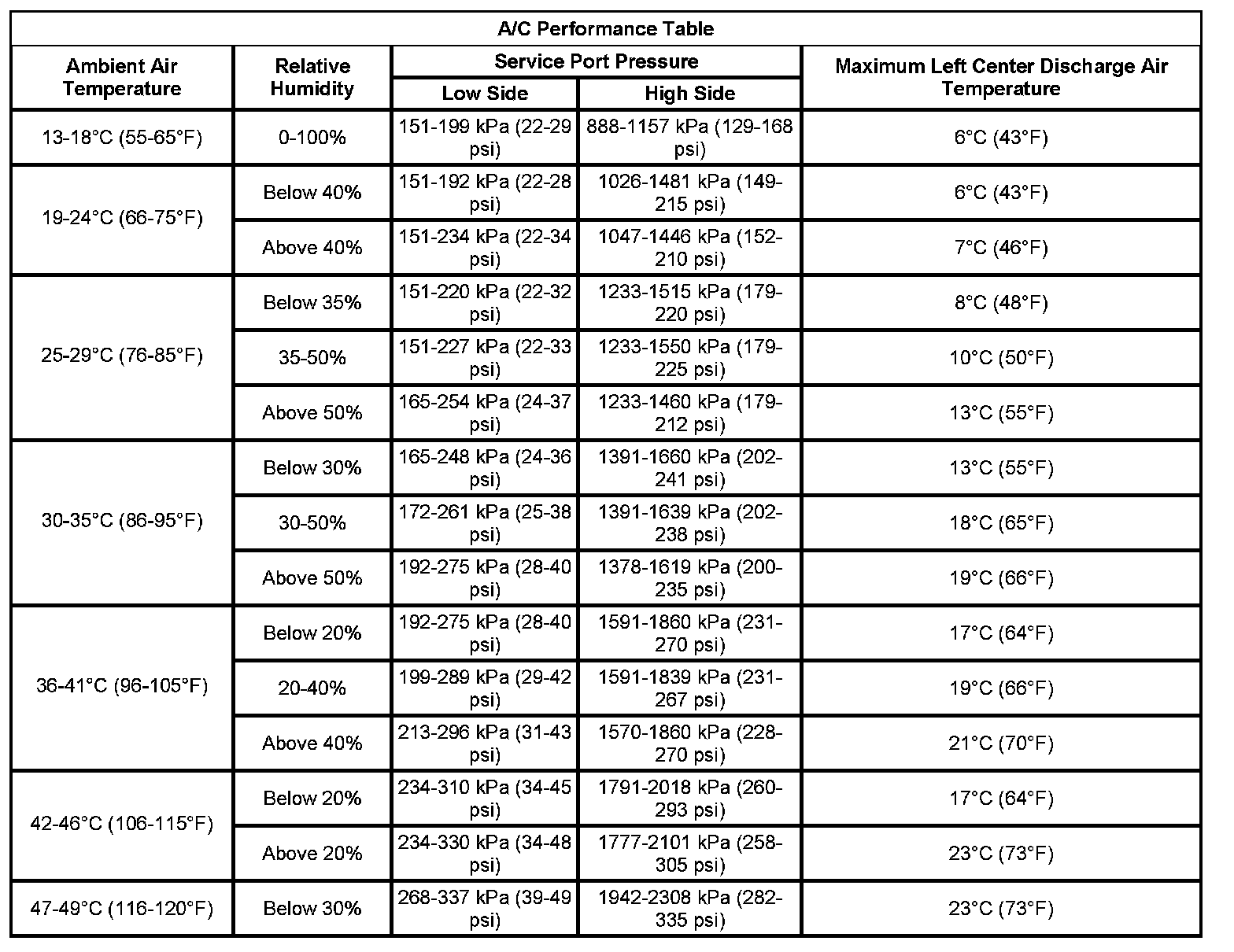 Air Conditioning (A/C) System Performance Test (LZE, LZ4, LZ9)