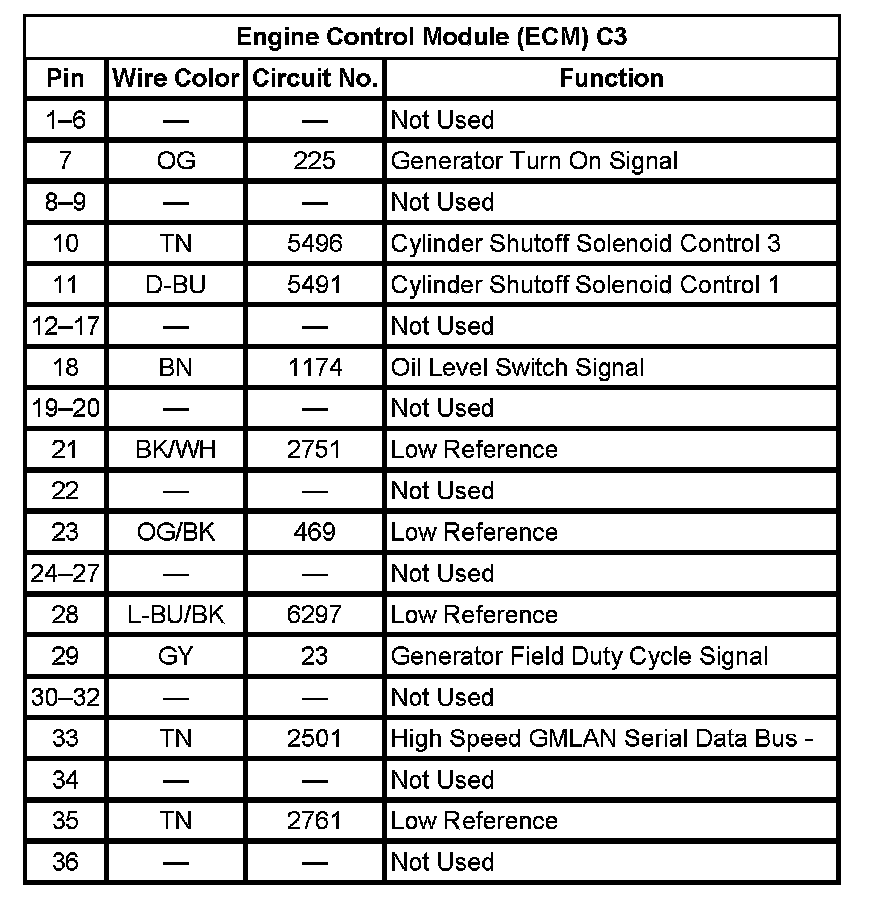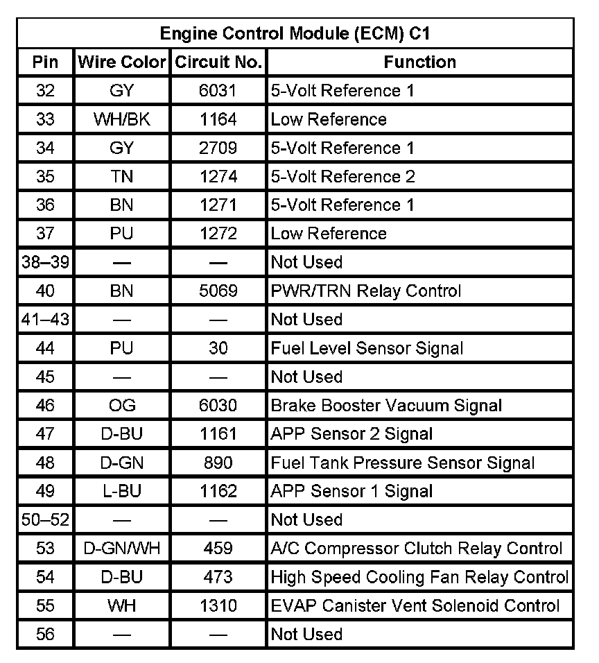 Engine Control Module (ECM) C1 (Pin 32 To 56):