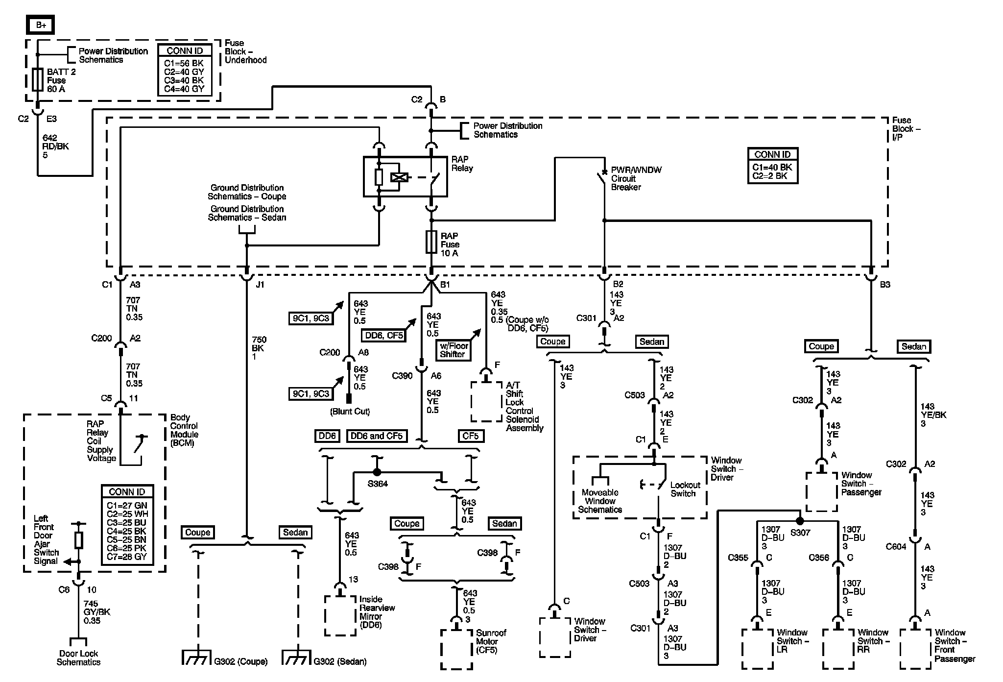 The locations for the Connectors, Grounds, Splices, and Grommets shown within these diagrams can be found via their numbers at Vehicle Locations.