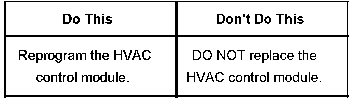 A new calibration has been released to correct this condition. Reprogram the HVAC control module using SPS. This new service calibration is available on TIS2WEB.