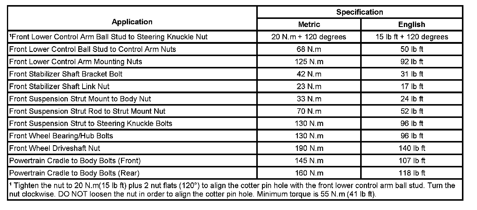 Fastener Tightening Specifications: