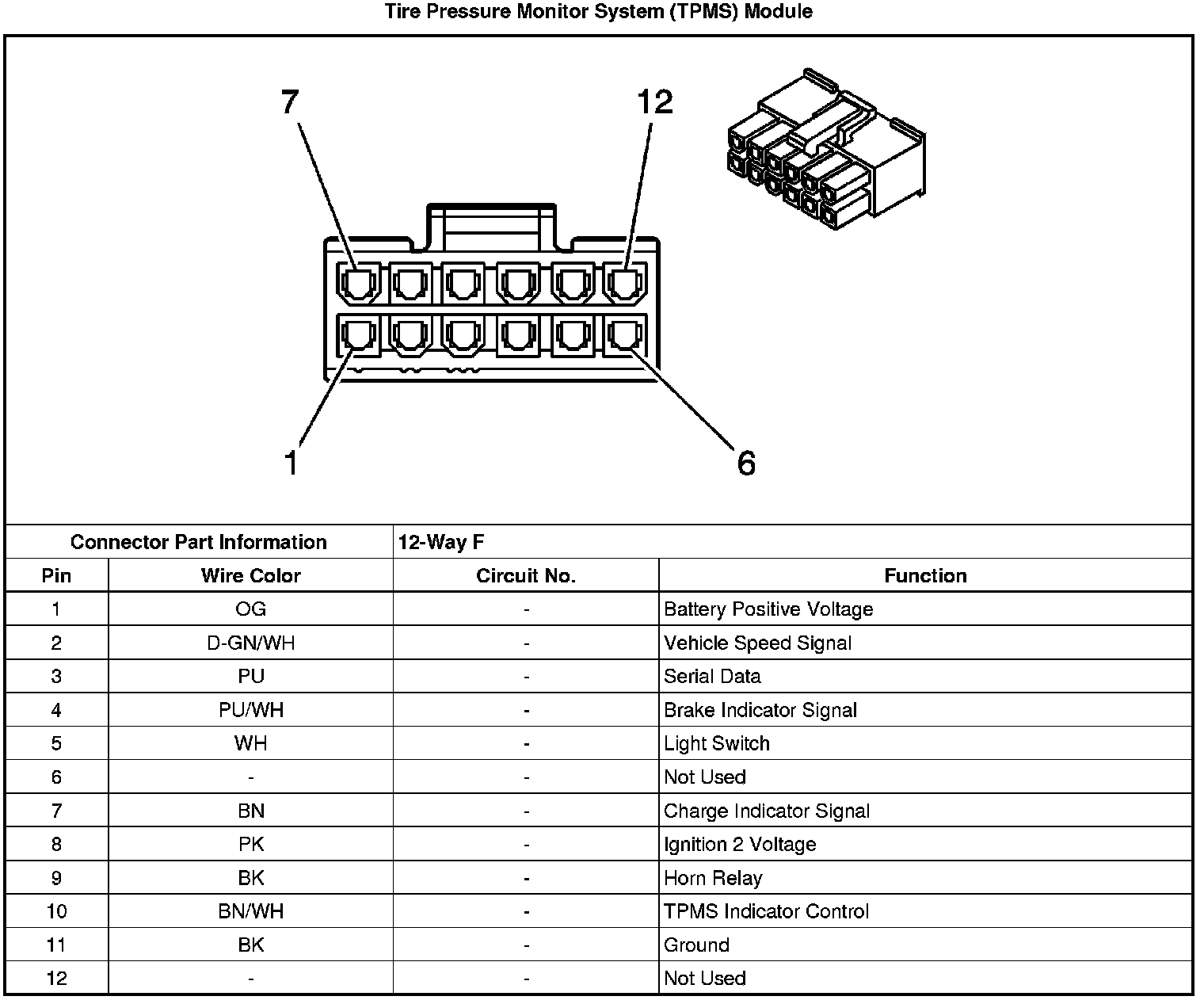 Tire Pressure Monitoring System Connector End Views