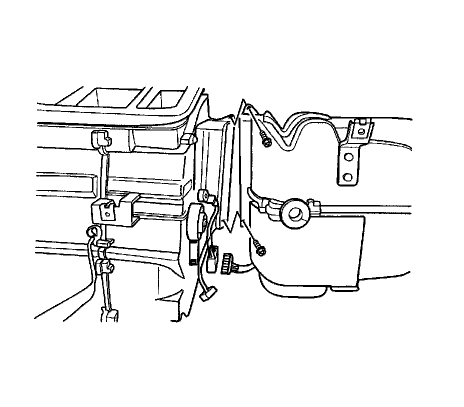 4. Remove the heater/air distributor case assembly. Refer to HVAC Module Assembly Replacement Service and Repair.
