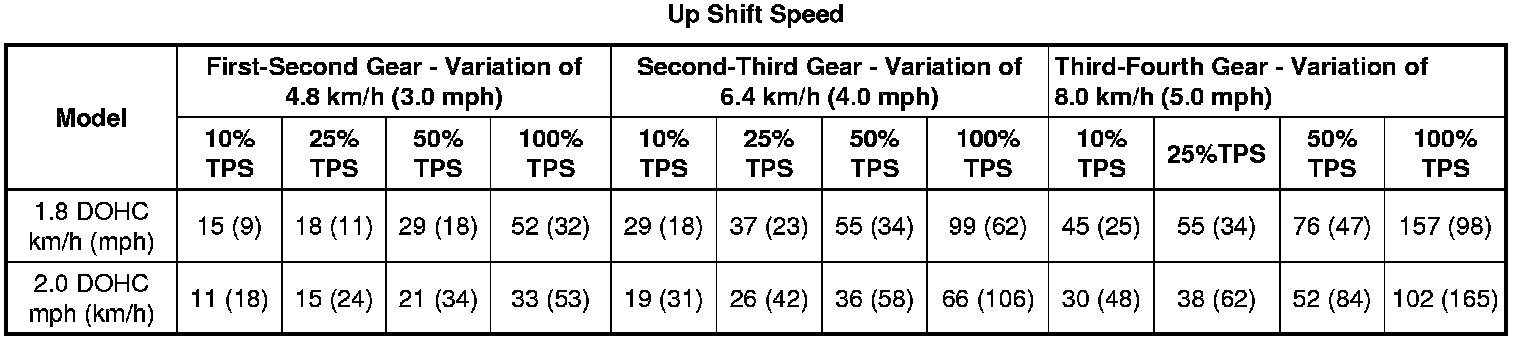 Lock-up Clutch Applied: Economic Mode, Fourth Gear - 1.8 DOHC