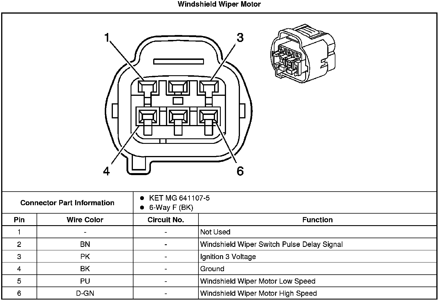 Wiper/Washer Connector End Views (Notchback)