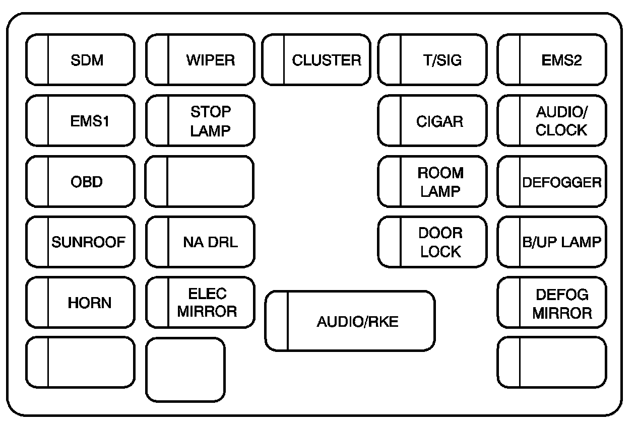 EMS1 Engine Room Fuse Block, Rear HO2S, Transmission Control Module, VSS, Fuel Pump