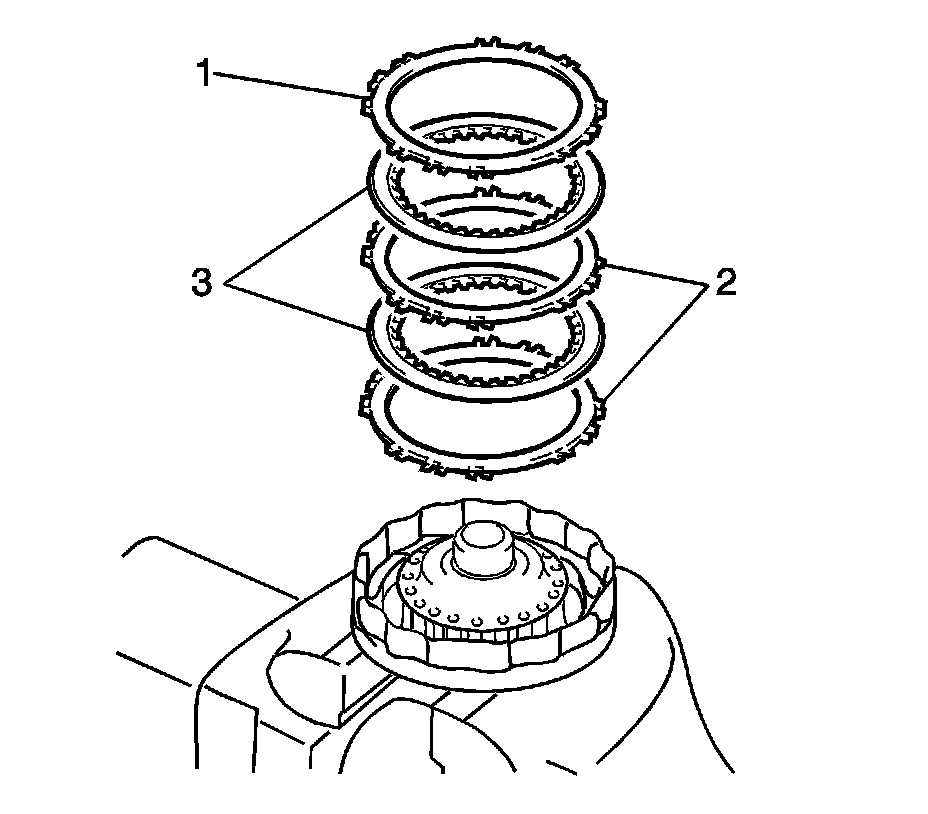 8. Install the 2 plates (2), 2 discs (3), and the flange (1) in order: 2-3-2-3-1.