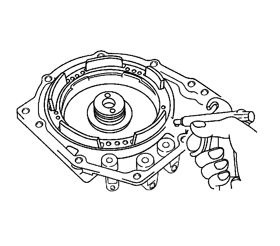Notice: Do not chisel and remove the planetary ring gear nut staking before removing the nut. Damage to the planetary ring gear could result if force is applied. Remove the nut without unstaking the planetary ring gear. If force is used to unstake the planetary ring gear nut, damage the bearing could result.