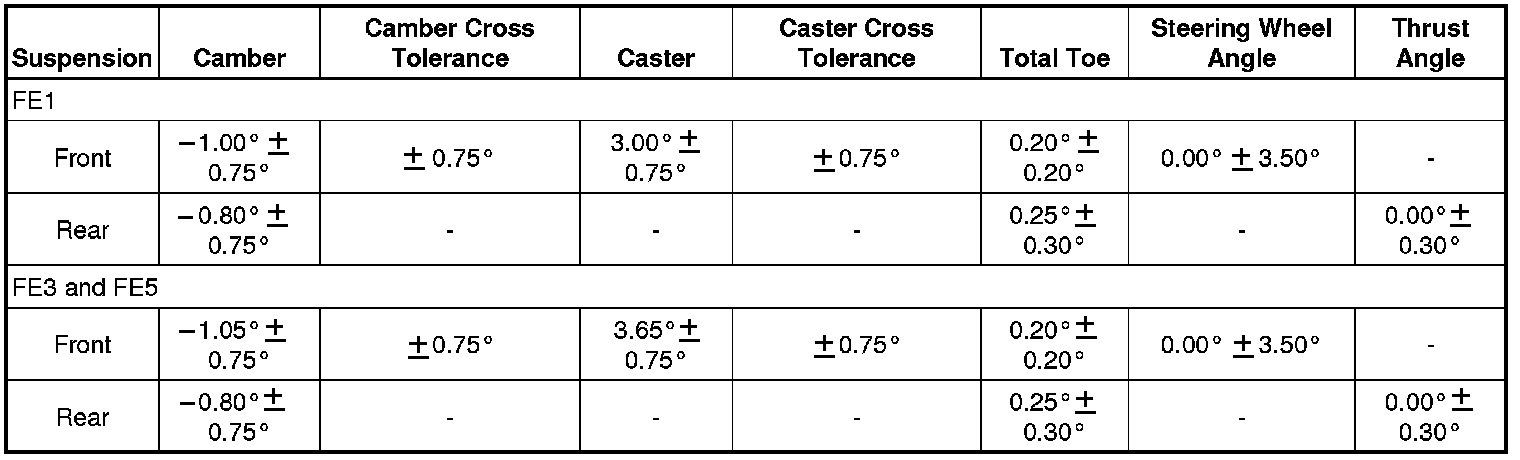 Wheel Alignment Specifications
