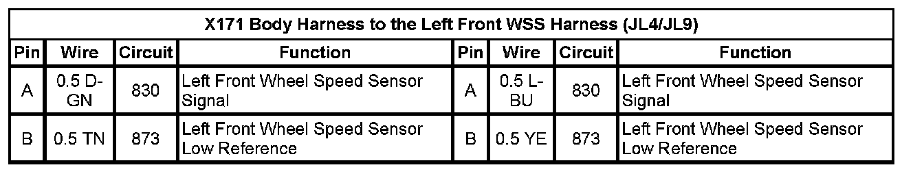 X171 Body Harness to the Left Front WSS Harness (JL4/JL9)
