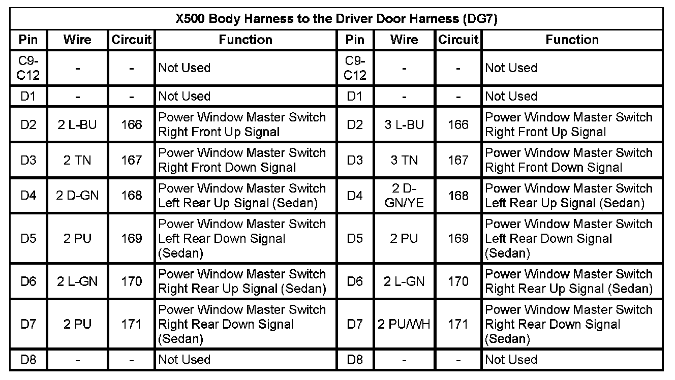 X500 Body Harness To The Driver Door Harness (DG7) (Pin C9 To D8):