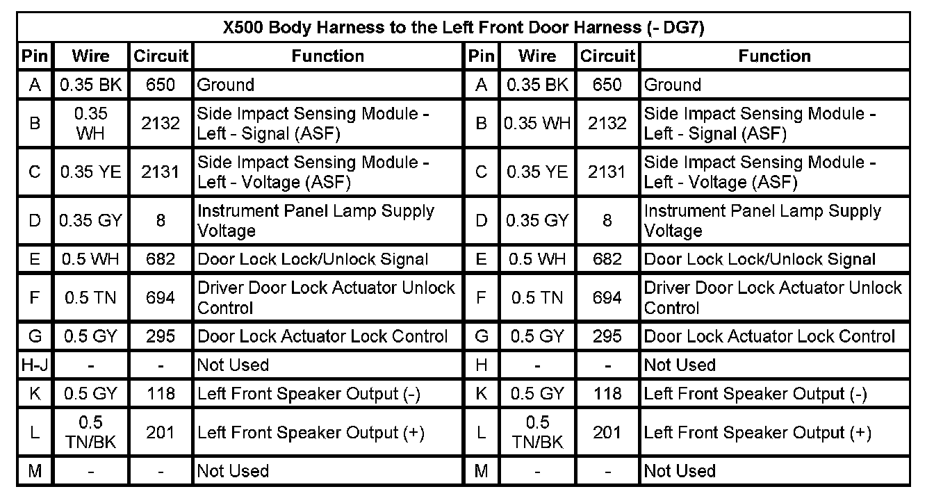 X500 Body Harness to the Left Front Door Harness (- DG7)