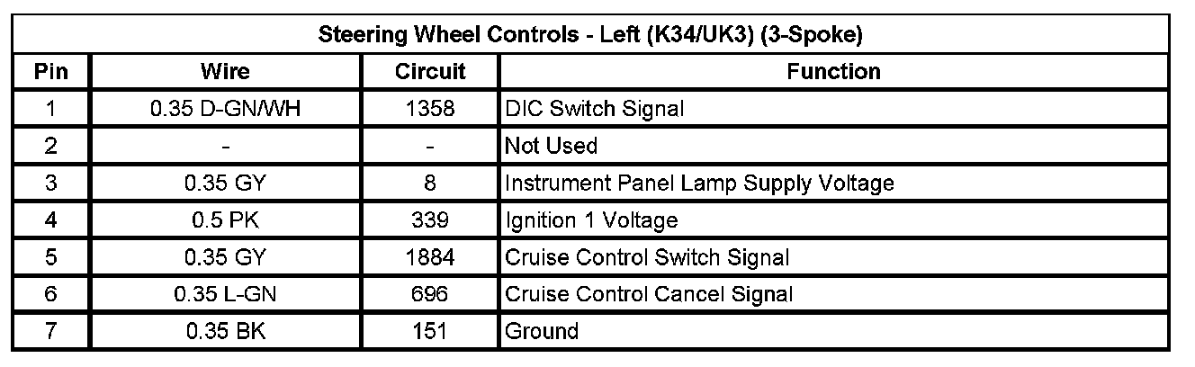 Steering Wheel Controls - Left (K34/UK3) (3-Spoke)