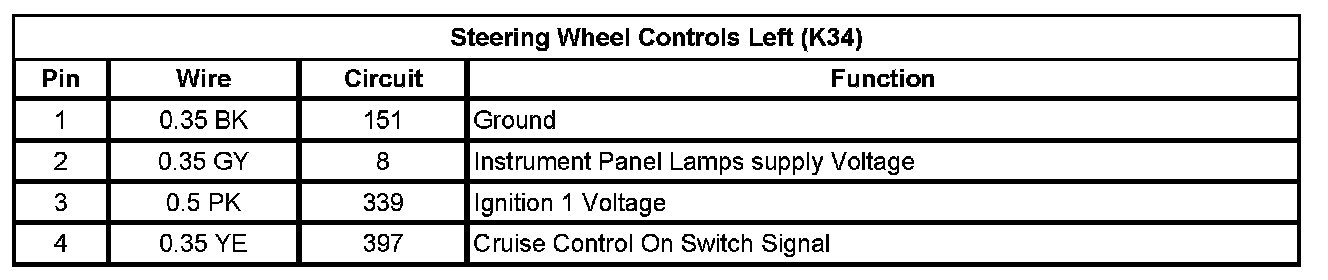 Steering Wheel Controls - Left (K34) (4-Spoke Wheel)