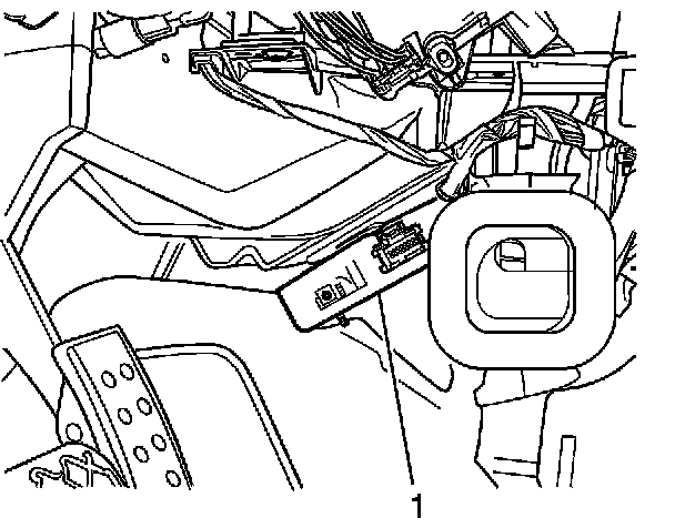 Remove the backing tape from the dual lock on the module and carefully insert the receiver into the cavity between the floor and the heater case. The connector end should point toward the driver's (left) side of the vehicle and the taped side toward the heater case. Refer to the above illustration.