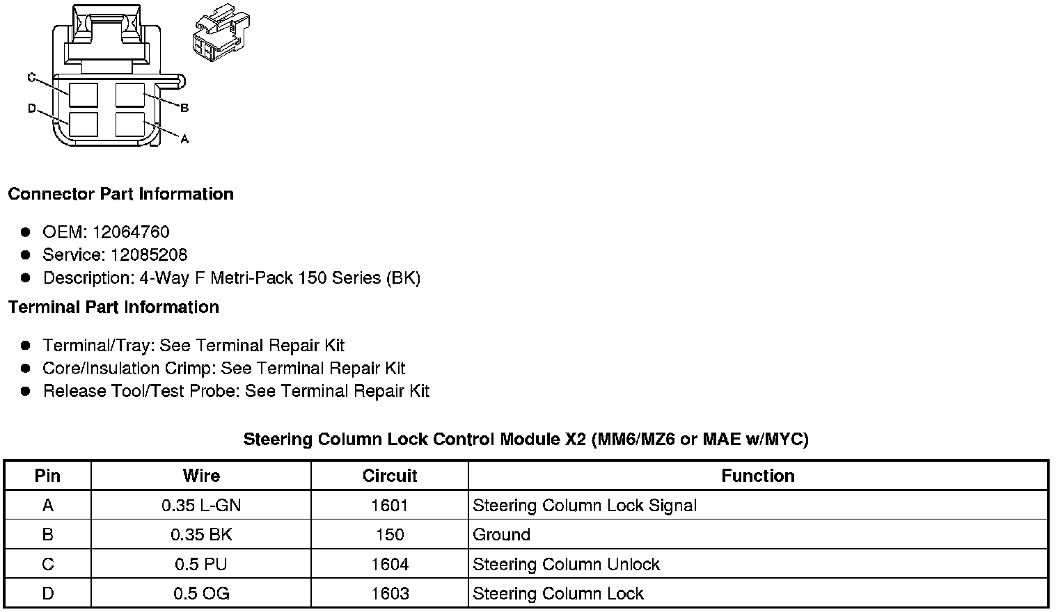 Steering Column Lock Control Module X1 (MM6/MZ6 or MAE w/MYC)