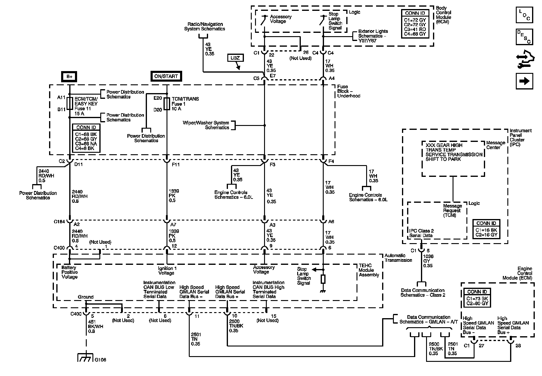 Power, Ground, Serial Data, and Stop lamp Switch Signal