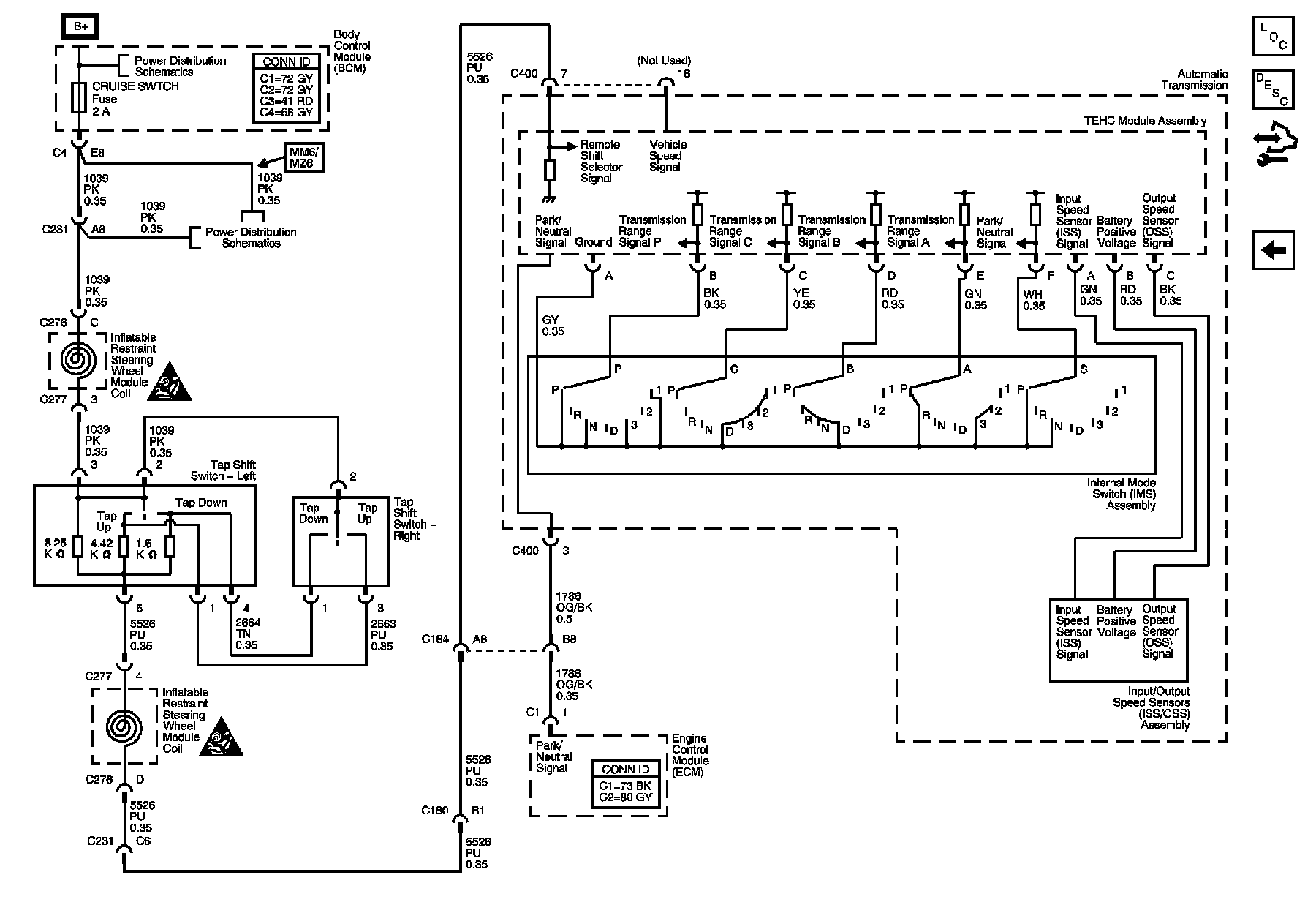 Input/Output Speed Sensors (ISS/OSS), Internal Mode Switch (IMS), and TAP Shift Switches