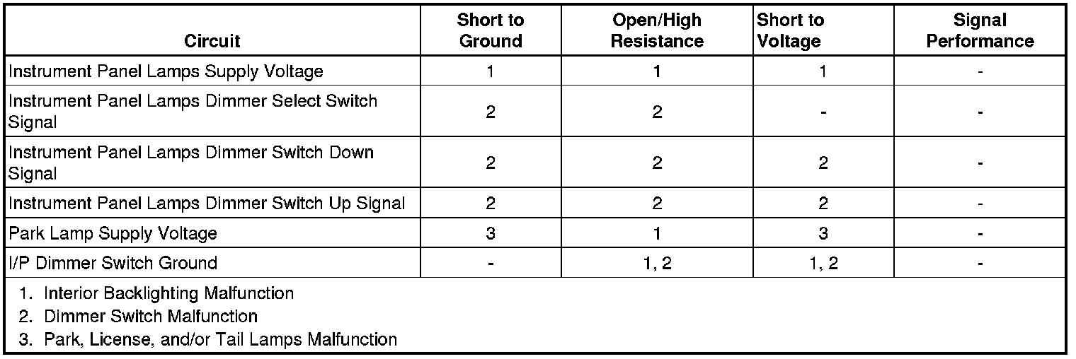 3. If the dimmer switch functions as specified, refer to Interior Backlighting Malfunction.