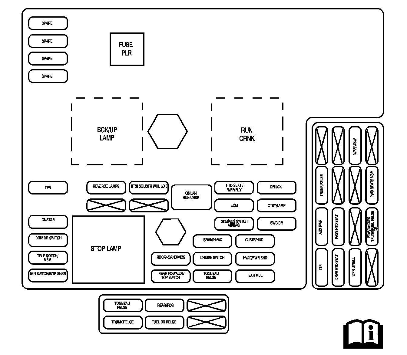 REAR FOG/ALDL/TOP SWTCH Rear Fog Lamp, Assembly Line Diagnostic Link Connector, Convertible Top Switch
