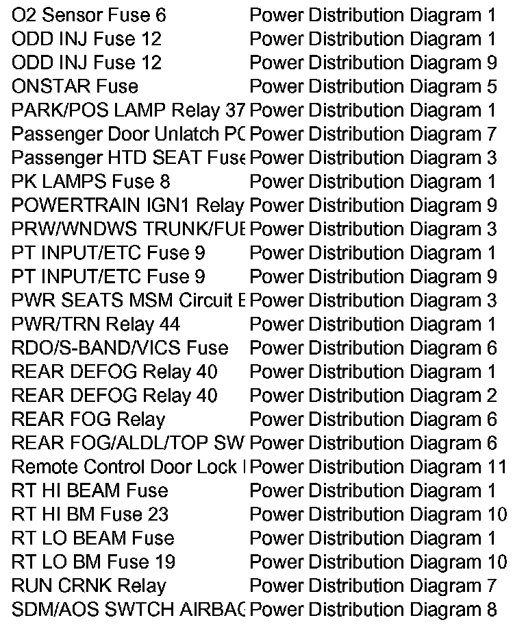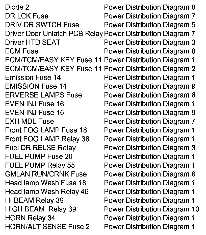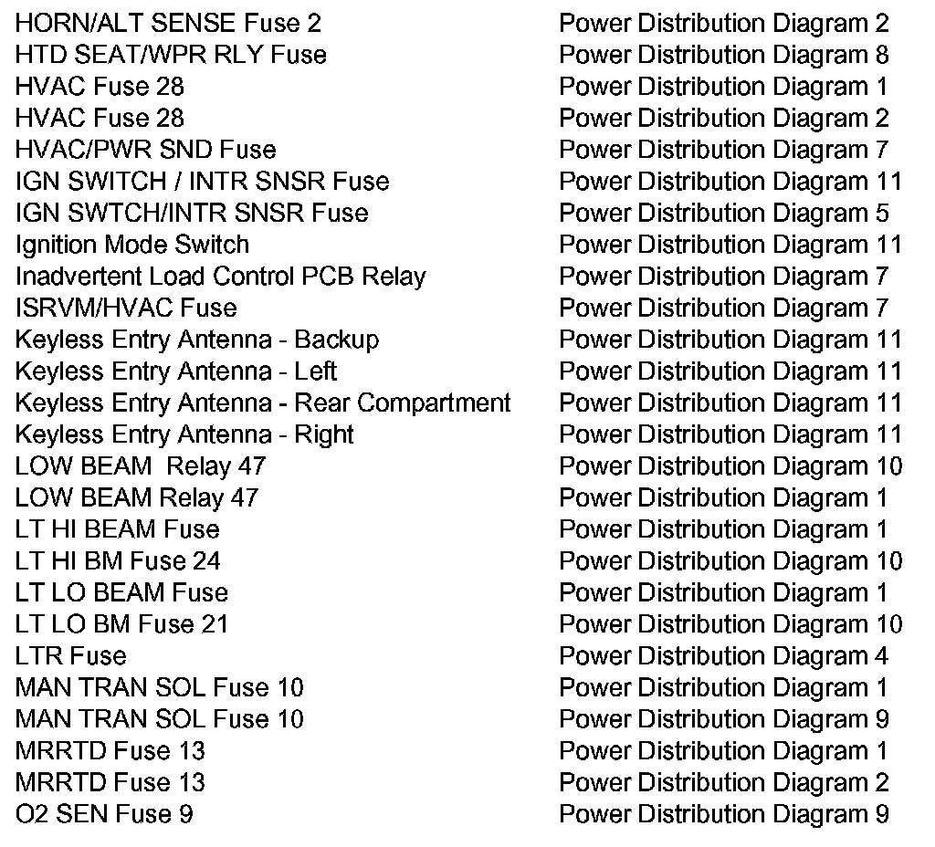Power Distribution Diagram Index