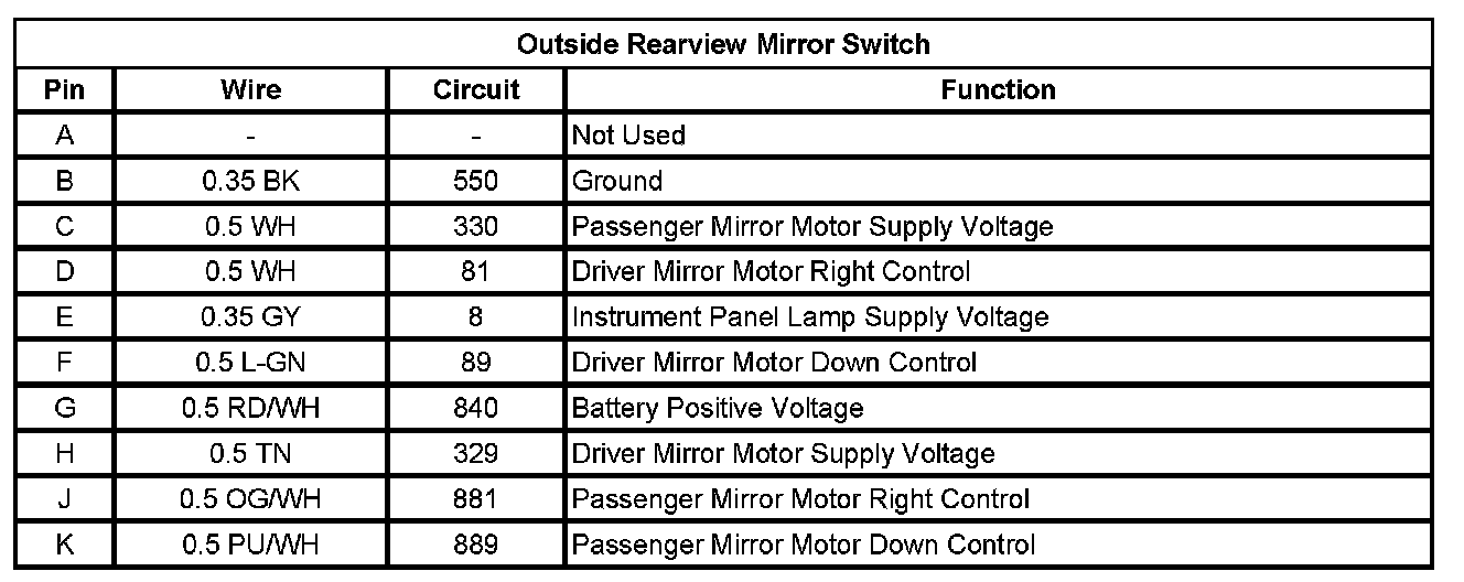 Outside Rearview Mirror Switch