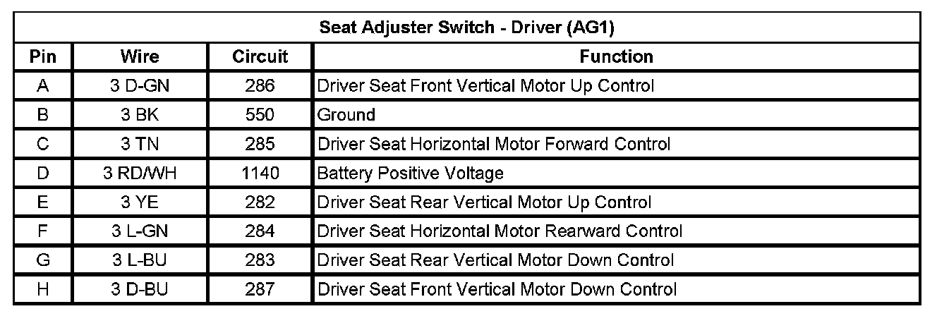 Seat Adjuster Switch - Driver (AG1)