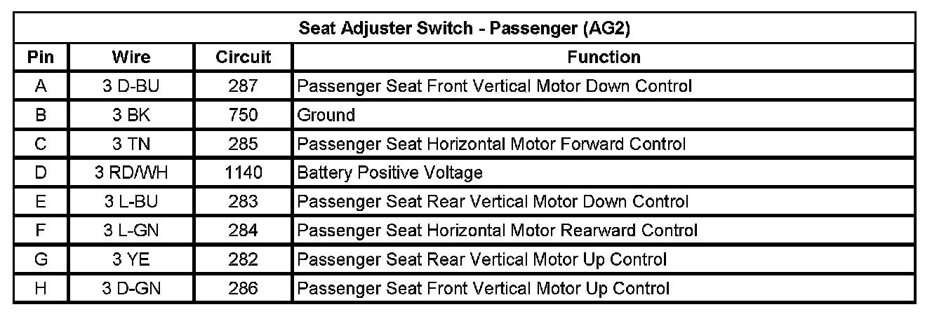Seat Adjuster Switch - Passenger (AG2)