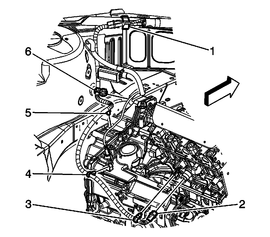 5. Remove the heater cord clips (4, 5) from the transaxle.