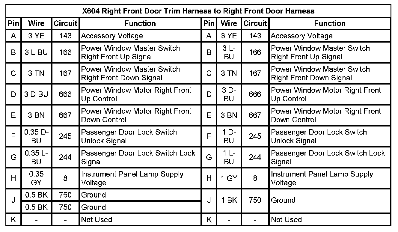 X604 Right Front Door Trim Harness to Right Front Door Harness