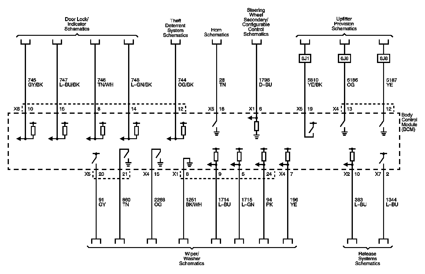 Door Lock/Indicator Continued, Theft Deterrent, Horns, Steering Wheel, Upfitter Provisions, Wiper/Washer, and Release System References