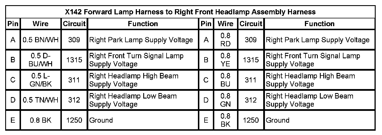 X142 Forward Lamp Harness to Right Front Headlamp Assembly Harness
