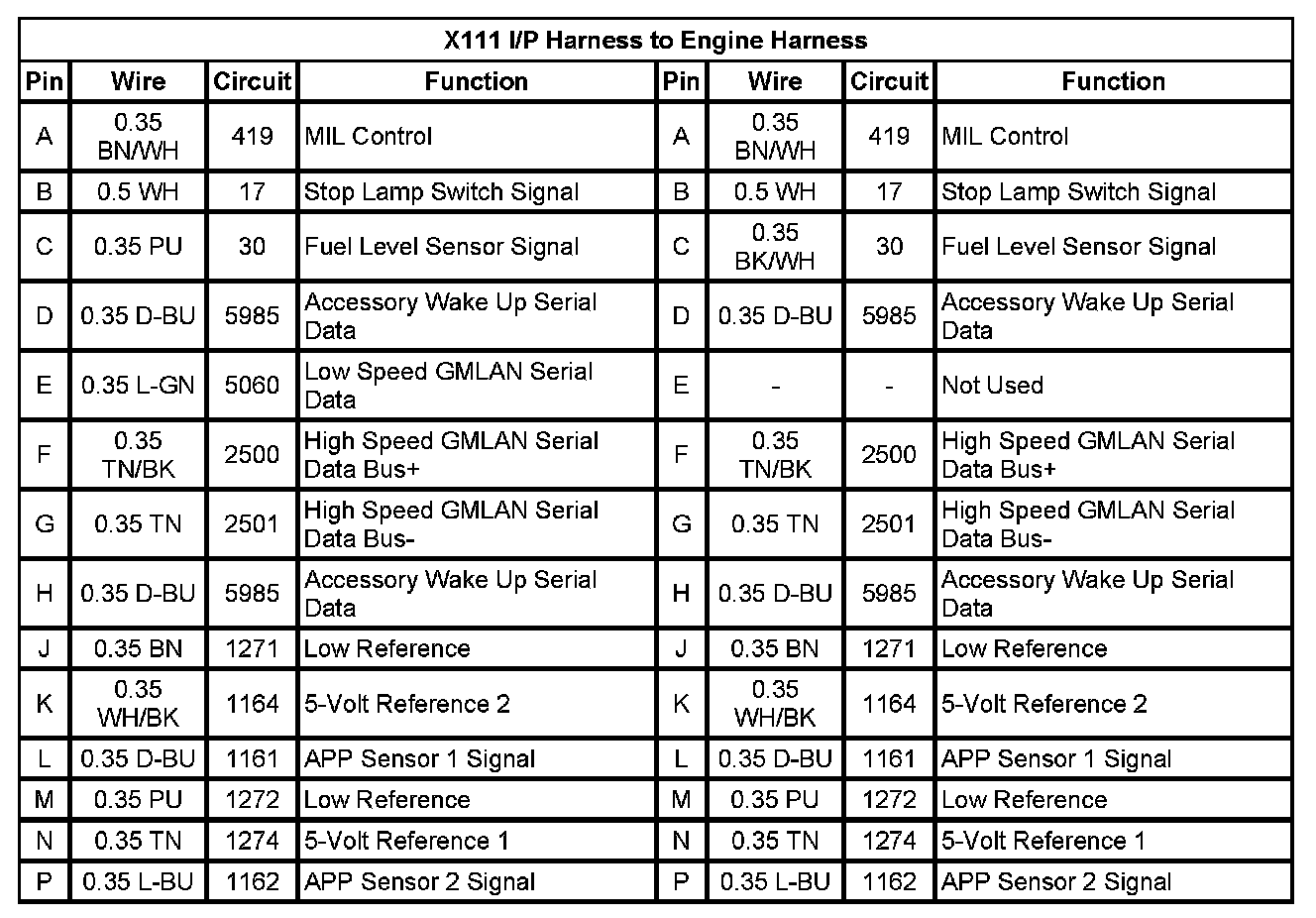 X111 I/P Harness to Engine Harness