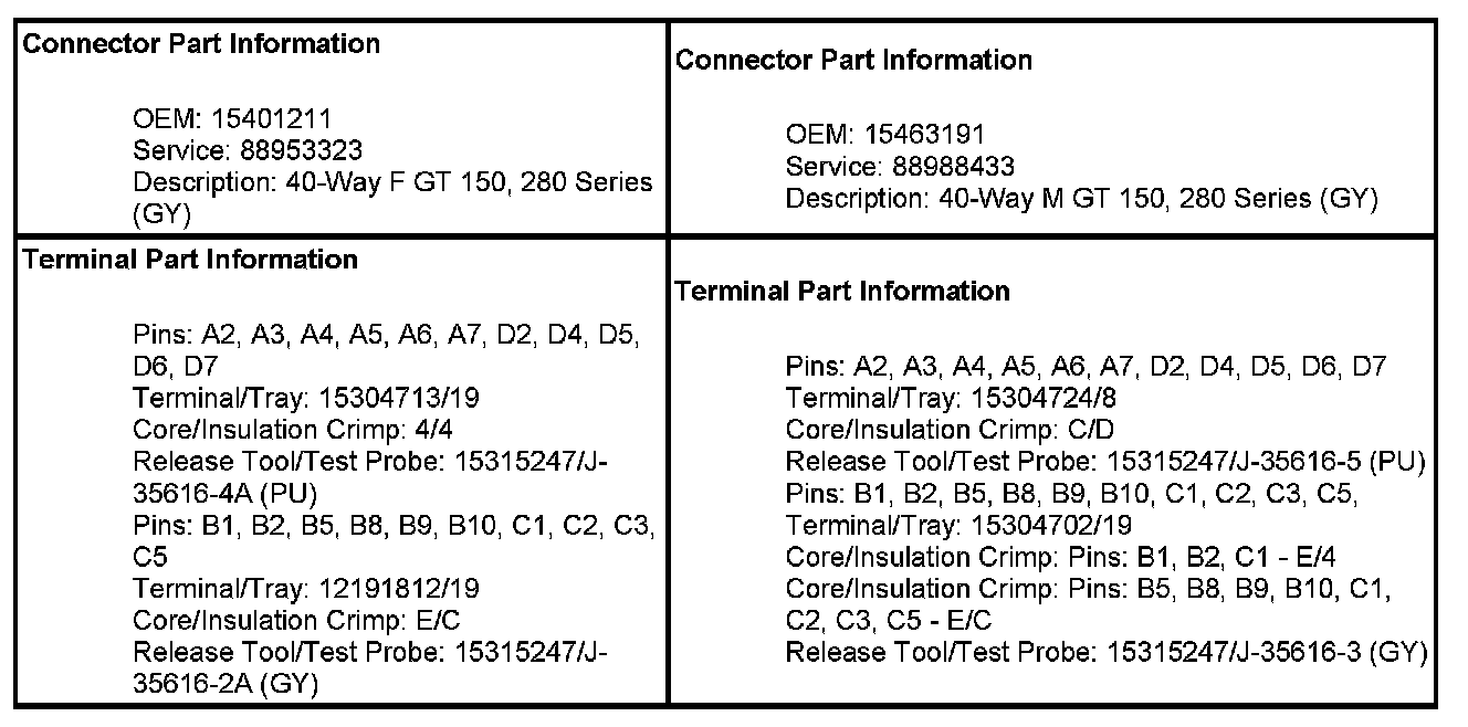 Inline Harness Connector End ViewsX503 Left Front Door Harness to Left Front Door Trim HarnessX503 Left Front Door Harness To Left Front Door Trim Harness (Pin A1 To D6):