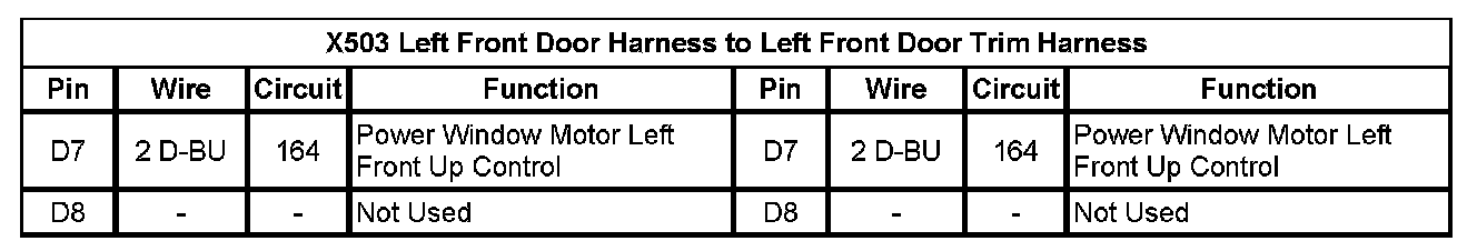 X503 Left Front Door Harness To Left Front Door Trim Harness (Pin D7 To D8):