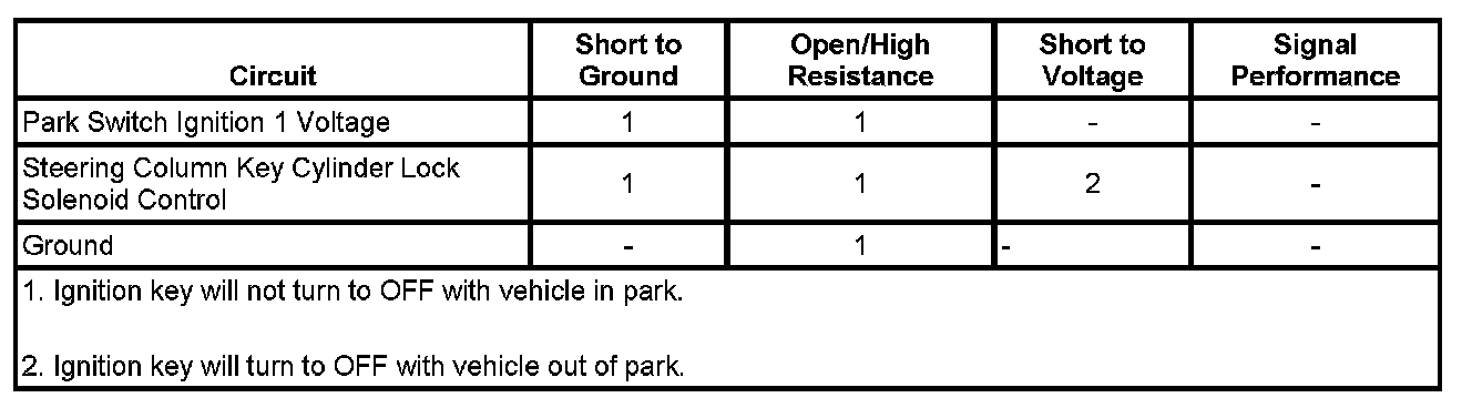 ^ If the test lamp is always OFF, test the control circuit, and the park switch accessory voltage circuit for a short to ground or open/high resistance. If the circuits test normal, test or replace the park switch.