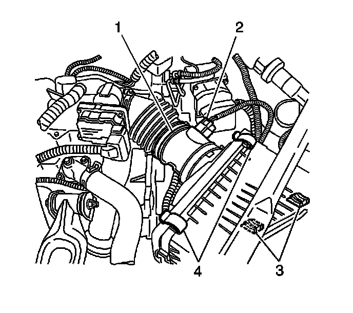 2. Disconnect the mass air flow (MAF)/intake air temperature (IAT) sensor electrical connector (2).