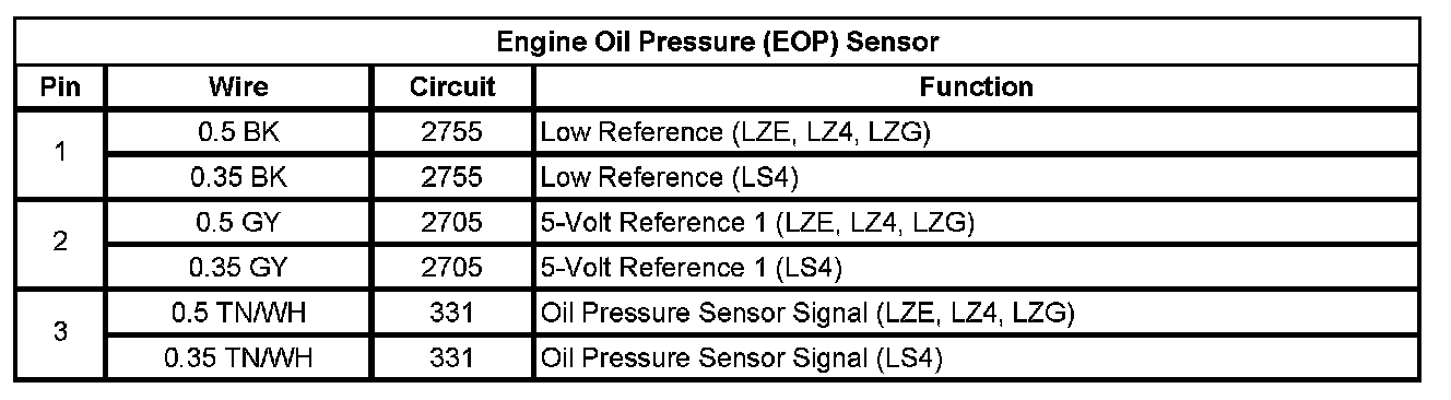 Oil Pressure Sensor: Diagrams