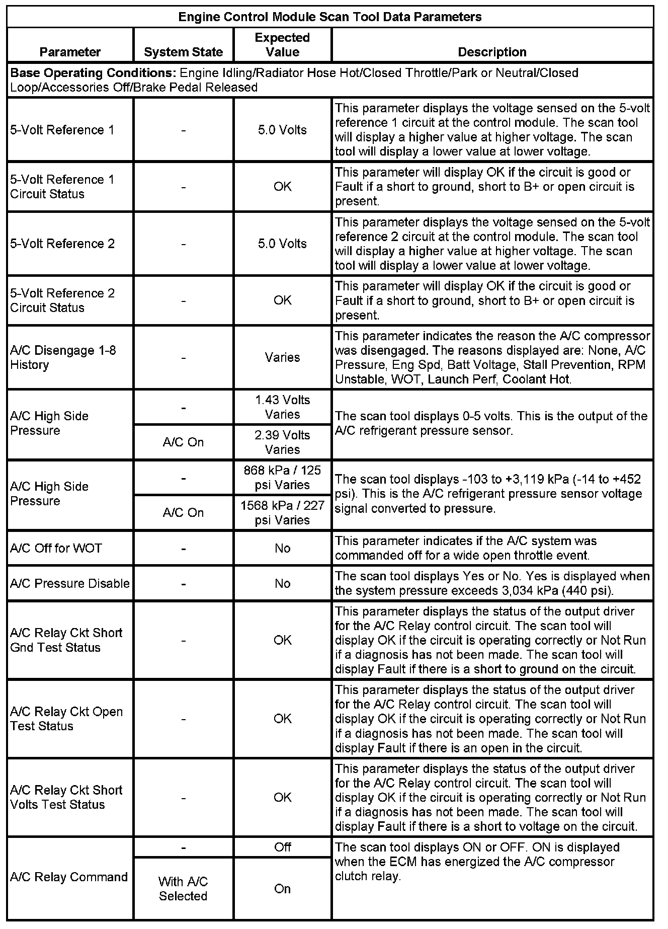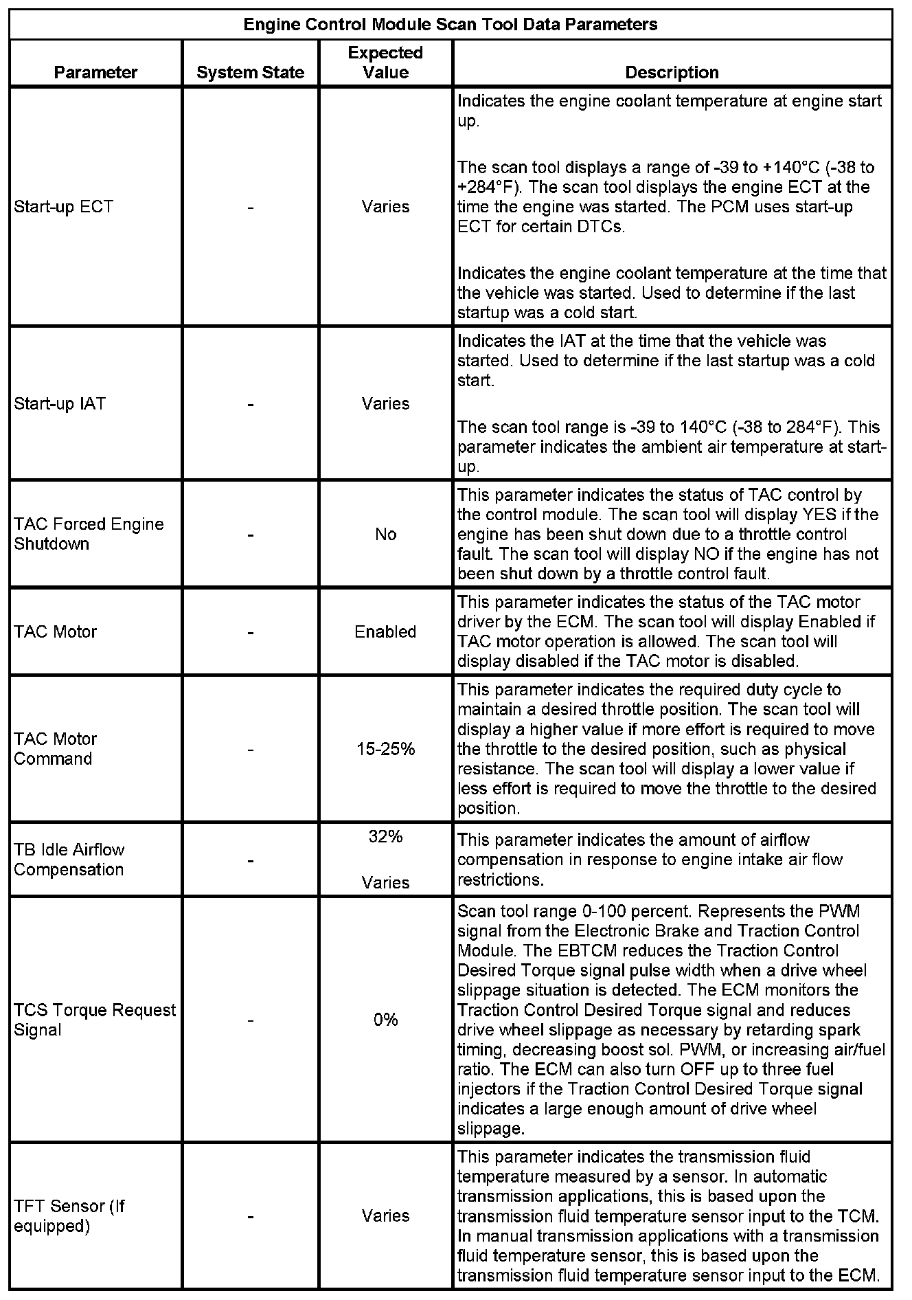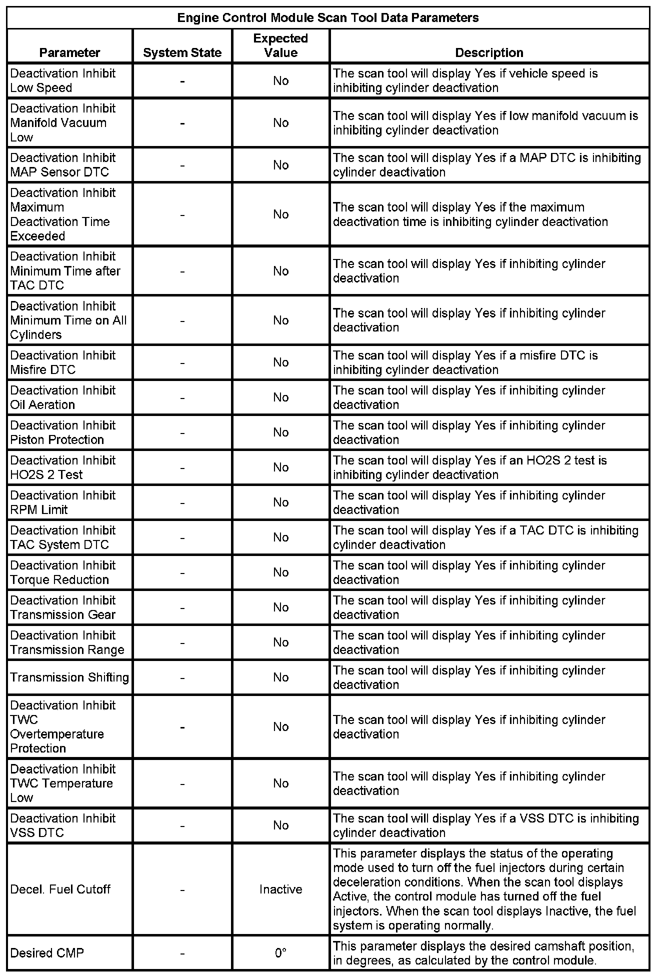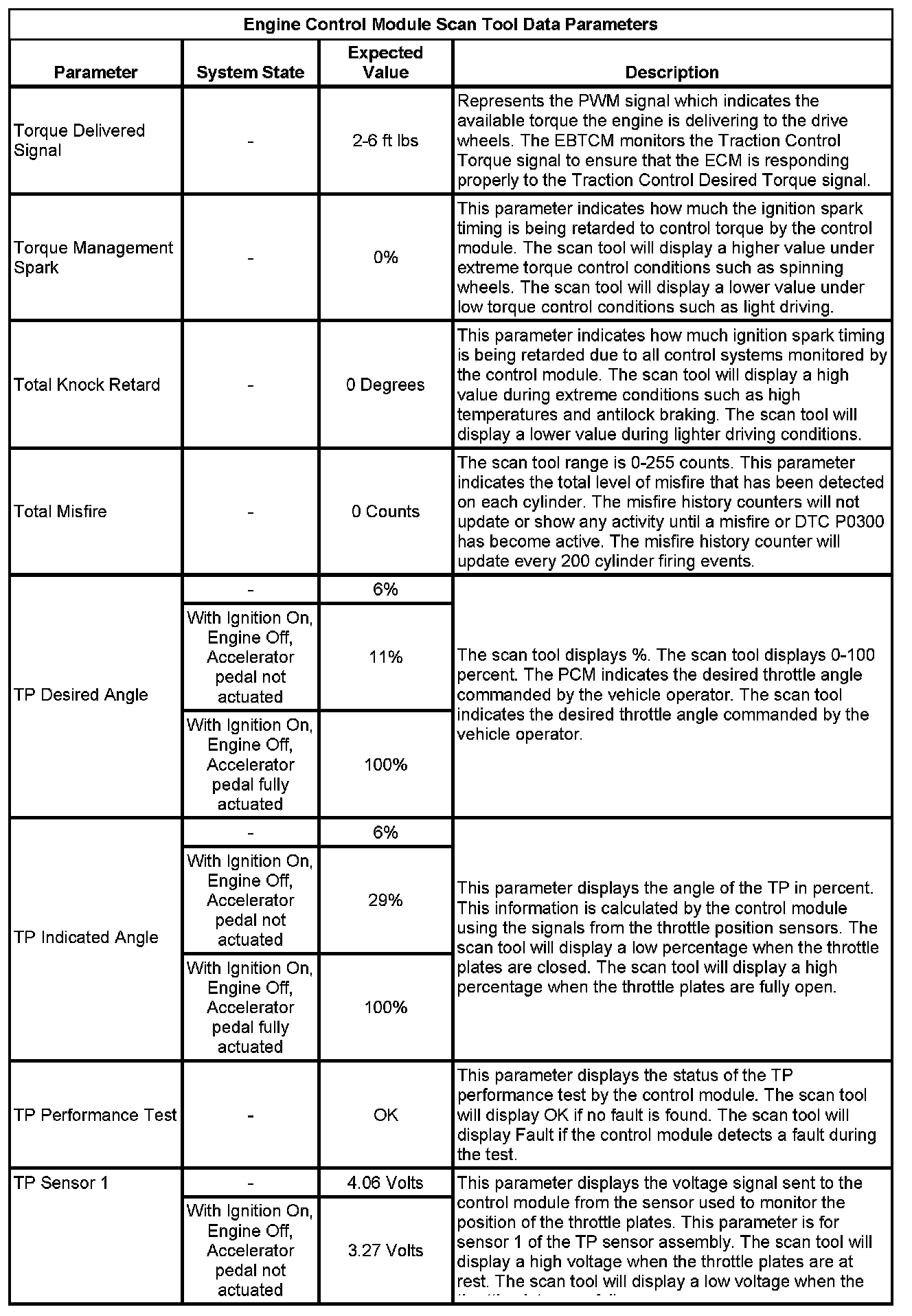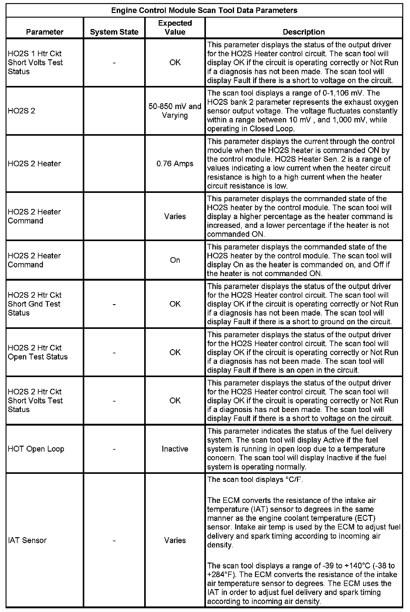 The Engine Control Module Scan Tool Data List contains all engine-related parameters that are available on the scan tool. The list is arranged in alphabetical order. A given parameter may appear in any one of the data lists, and in some cases may appear more than once, or in more than one data list in order to group certain related parameters together.