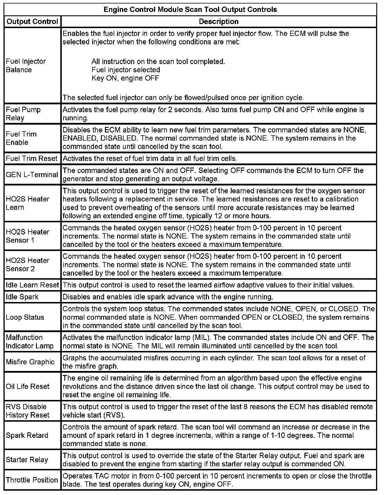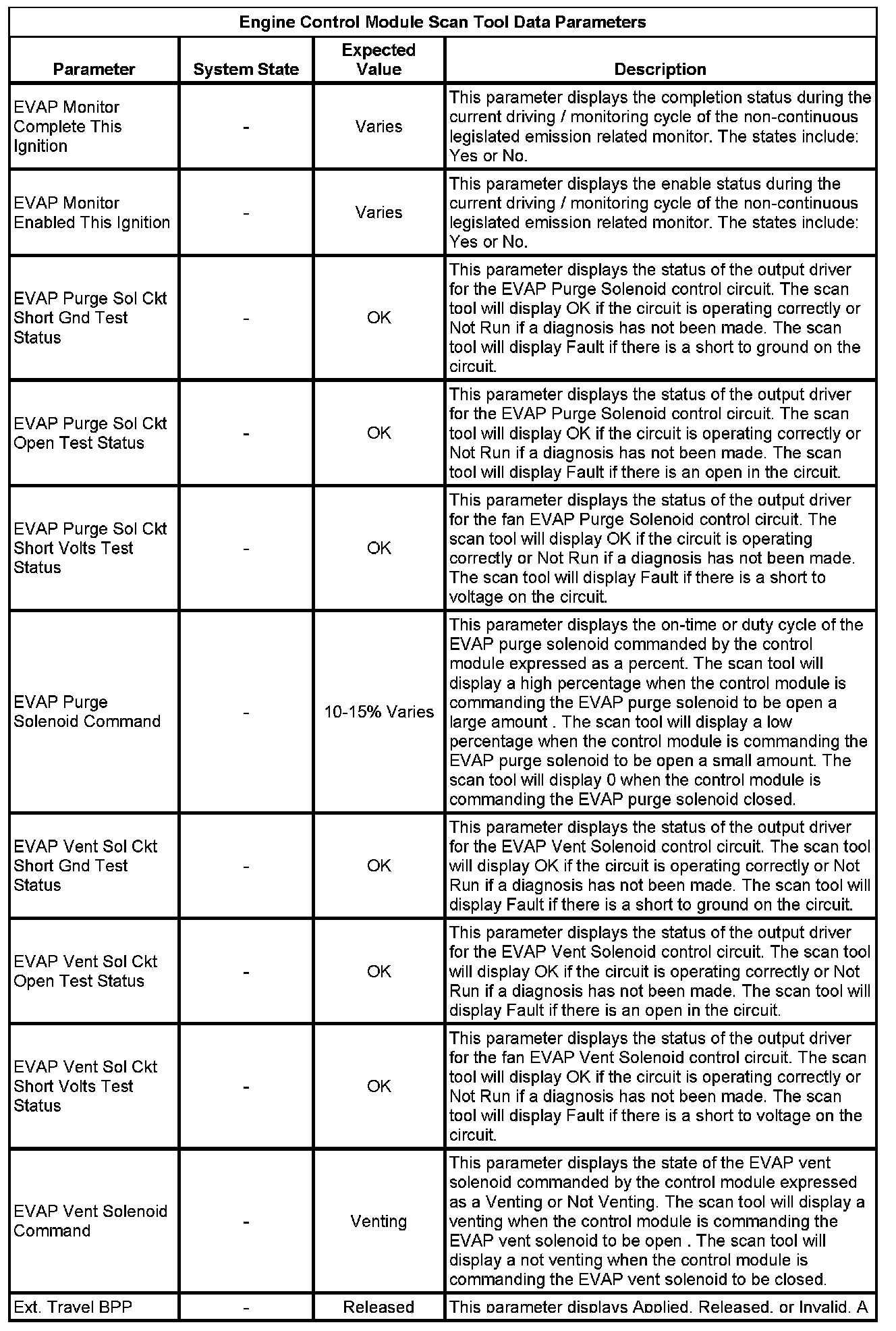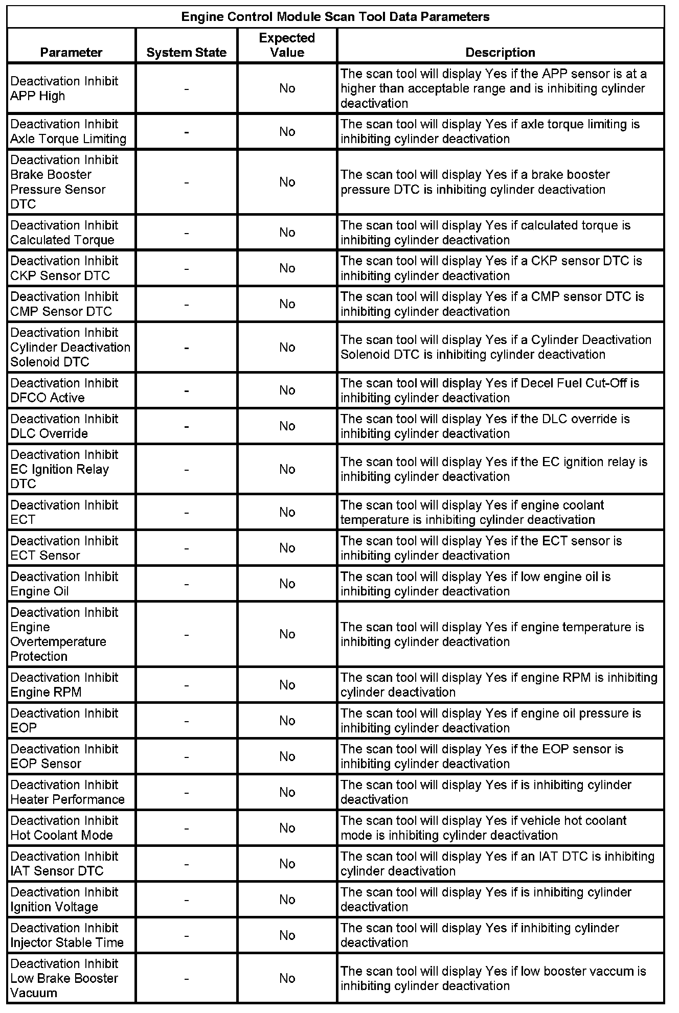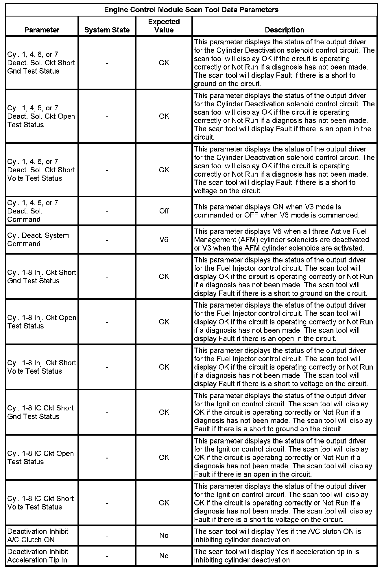 The Engine Control Module Scan Tool Data List contains all engine-related parameters that are available on the scan tool. The list is arranged in alphabetical order. A given parameter may appear in any one of the data lists, and in some cases may appear more than once, or in more than one data list in order to group certain related parameters together.