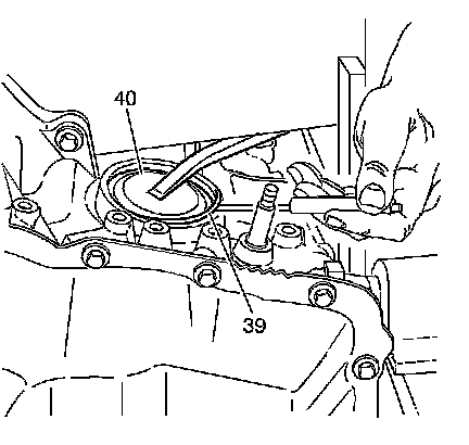2. Use a small screwdriver in order to pry out the retaining ring (39) from the reverse band servo cover.