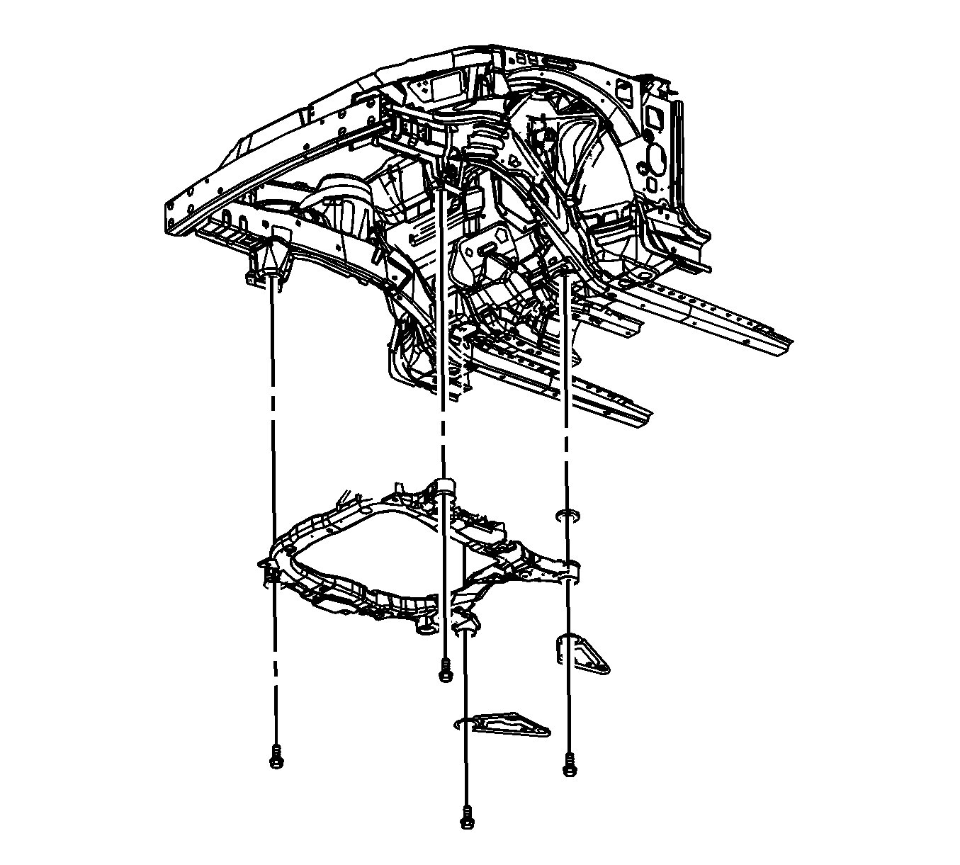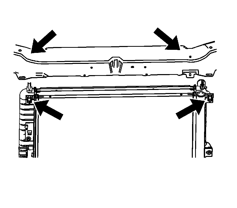 3.Connect the lower radiator support bracket to frame bolts using the alignment feature.