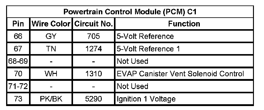 Powertrain Control Module (PCM) C1 (Pin 66 To 73):