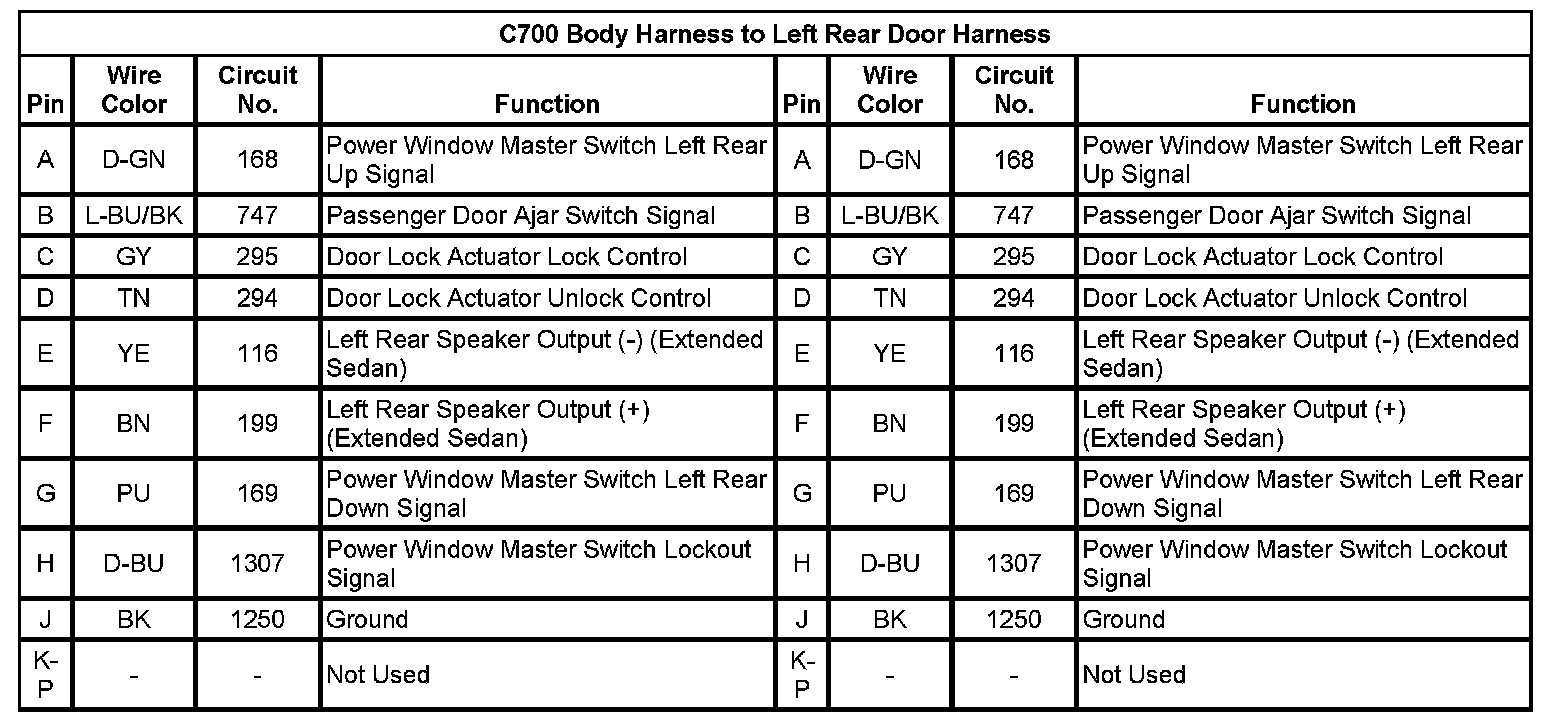 C700 Body Harness to Left Rear Door Harness
