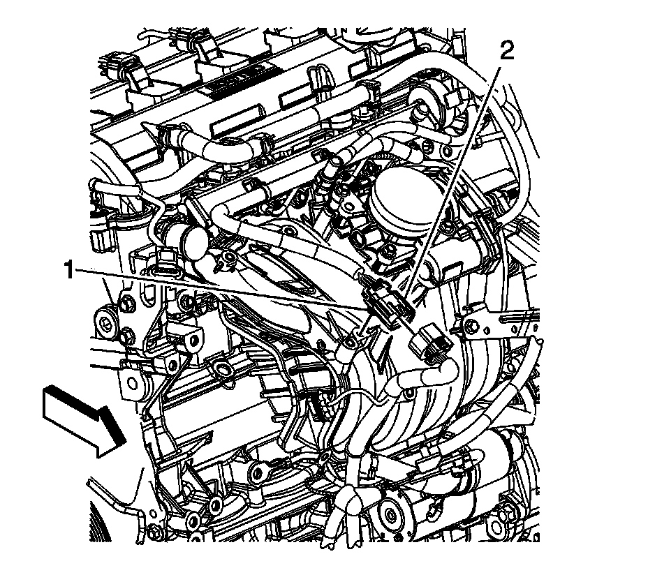 6. Disconnect the engine wiring harness electrical connector from the fuel injector harness wiring electrical connector (2).