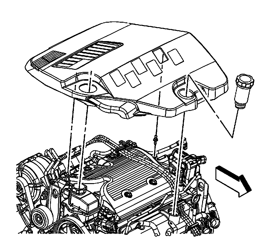 3. If equipped with electric power steering, place the cover over the ball studs, aligning the cover opening with the oil fill tube opening.