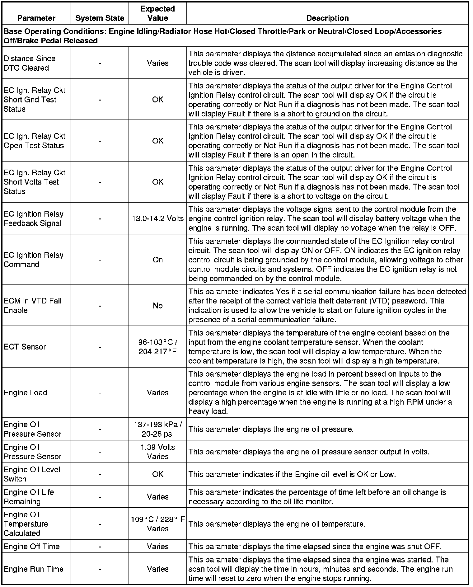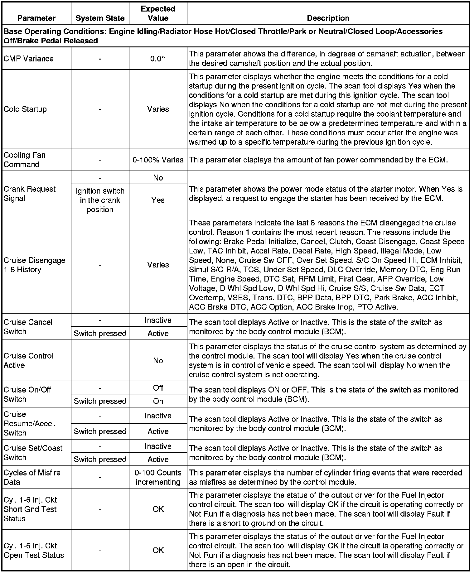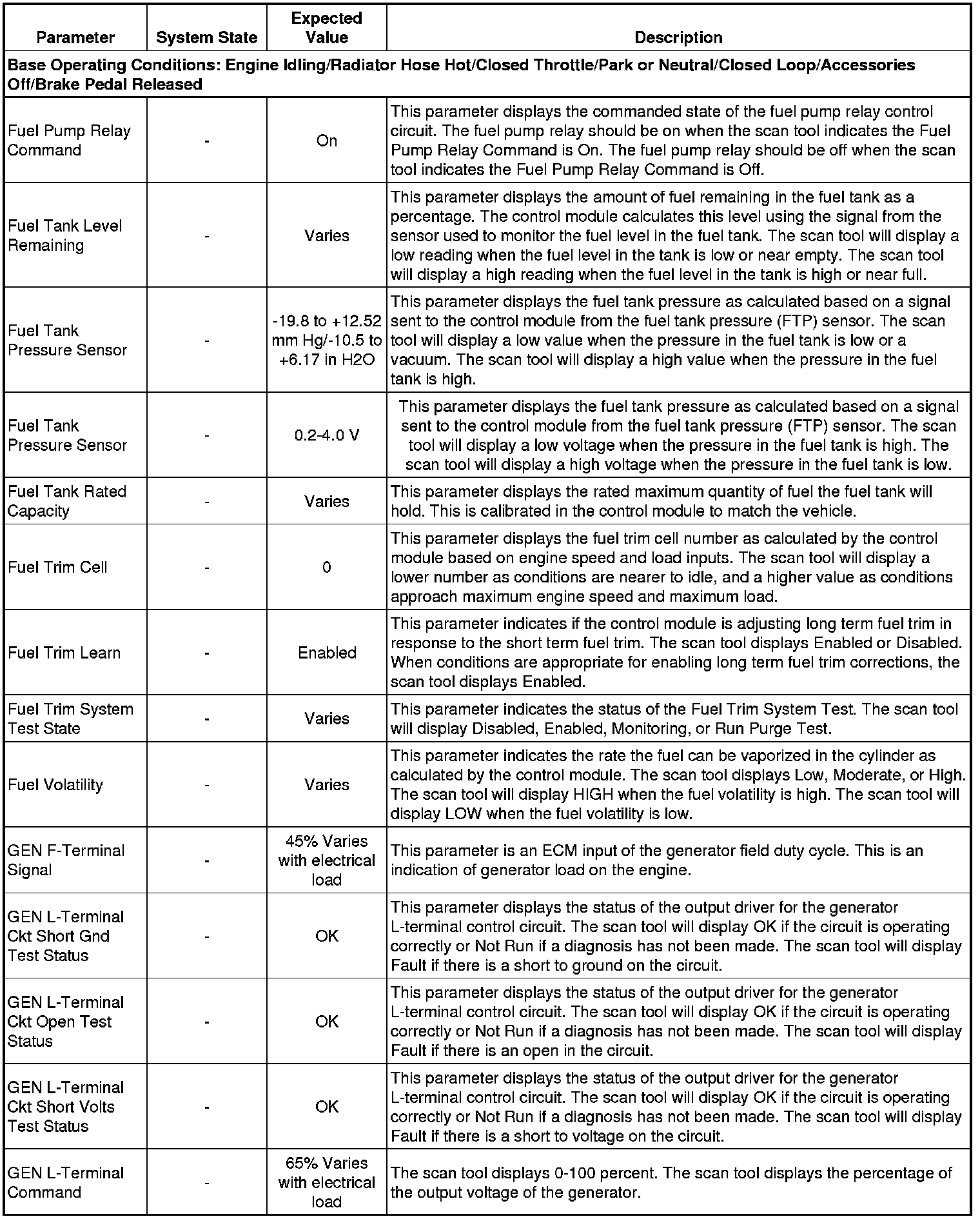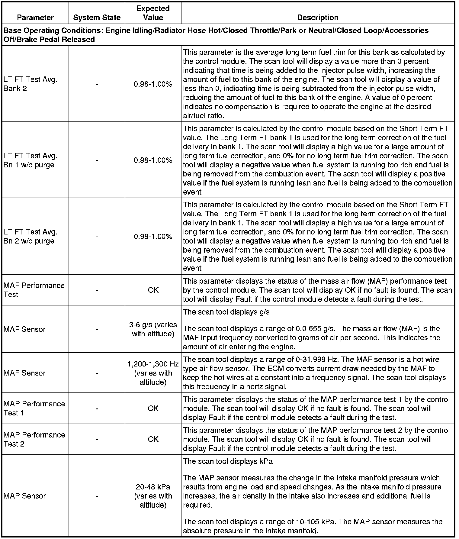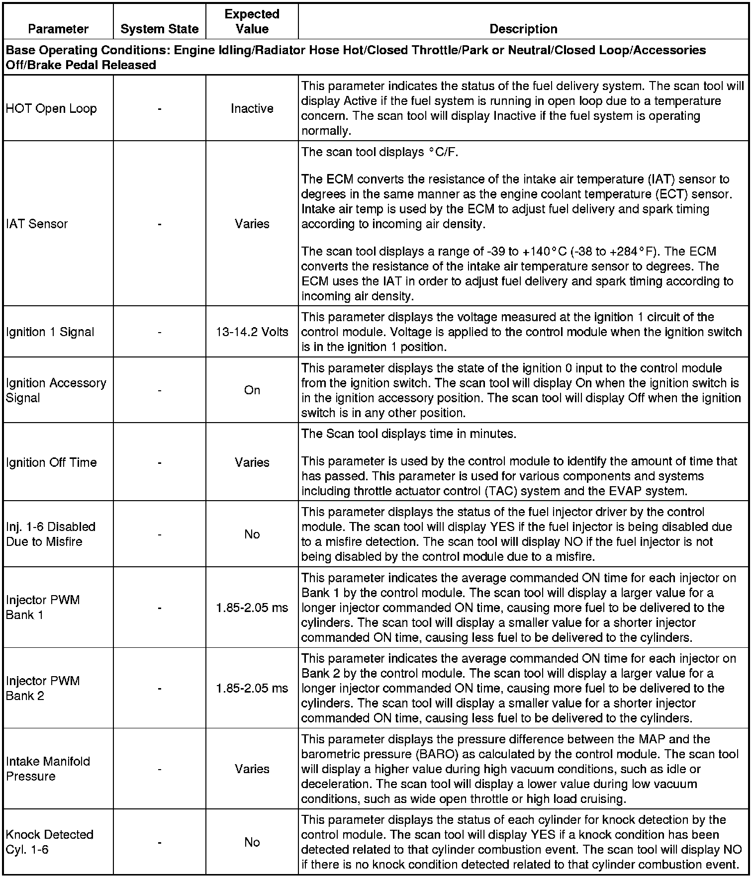 Only the parameters listed below are referenced in this service manual for use in diagnosis. If all values are within the typical range described below, refer to Symptoms - Engine Controls (- Symptoms - Engine Controls) for diagnosis.